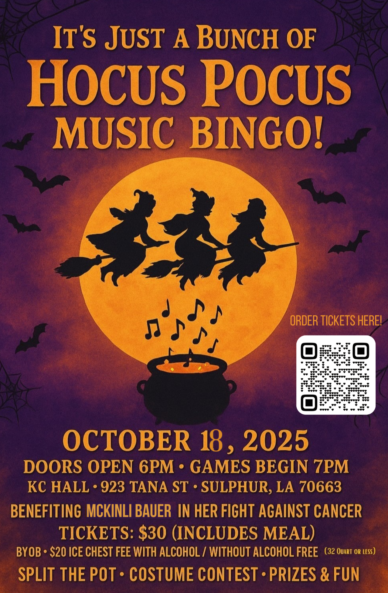 - Ticket pick up will be October 16th from 5-7pm at our lady of lasalette church (602 N Claiborne St in sulphur)